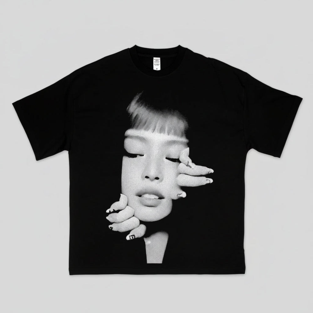 Ce t-shirt oversize unisexe s'inspire de l'esthétique K-pop moderne — un design affirmé qui s'intègre facilement dans un look streetwear coréen au quotidien, en concert ou en événement K-pop.